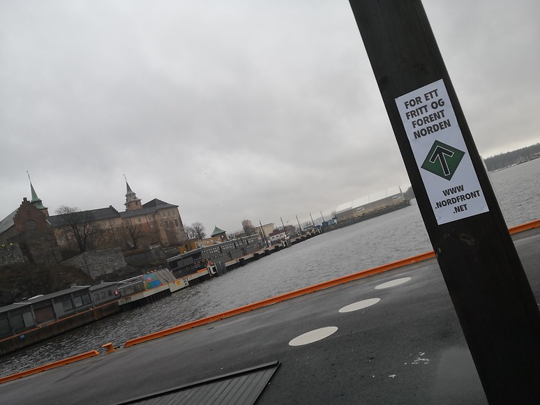 Medlemmer fra Rede 1 har satt opp plakater og klistremerker på Aker Brygge.