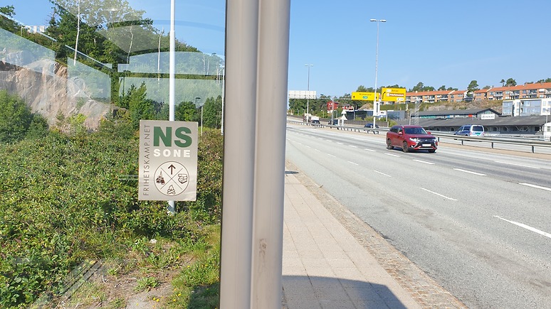 Rede 2 har hengt oop klistremerker på Vige i Kristiansand.