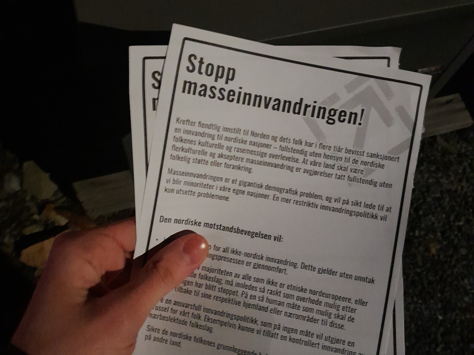 Flyveblader ble delt ut på Billingstad i Asker kommune.