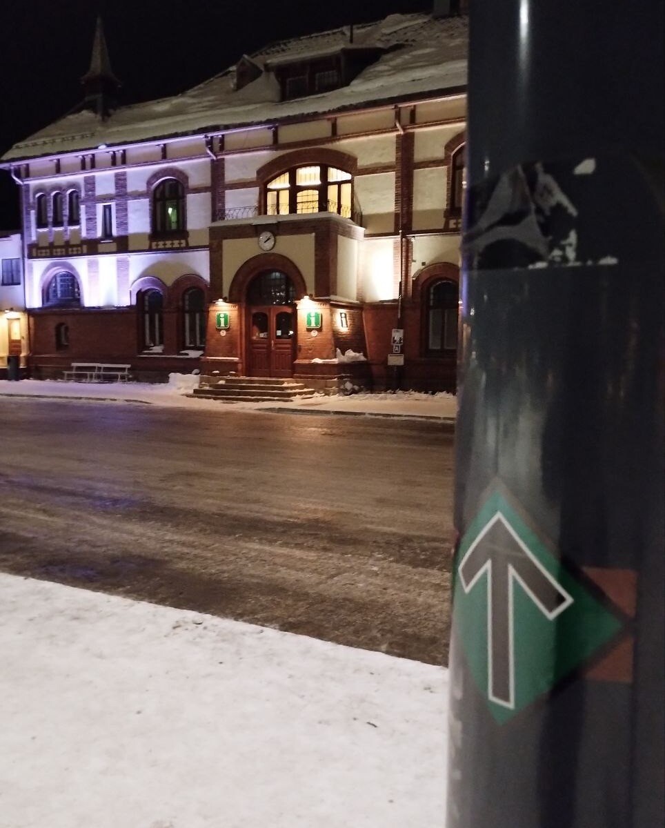 Klistremerker ble satt opp i Gjøvik sentrum.