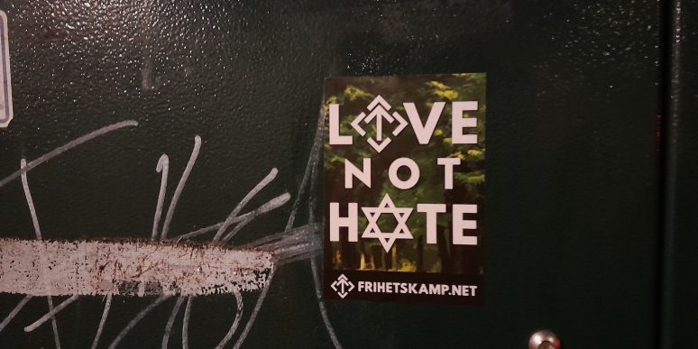 Det ble satt opp klistremerker i Tønsberg sentrum.