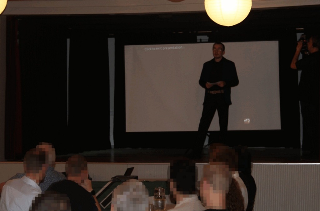 Etter middagen gikk den norske redesjefen fra rede 1 på scenen. Hans innlegg var basert på omfattende forskning på nyere vestlig grasrotsorganisering, der han hadde undersøkt hva som i praksis har vist seg å være effektivt, samt hvilke utfordringer slike bevegelser typisk står overfor.