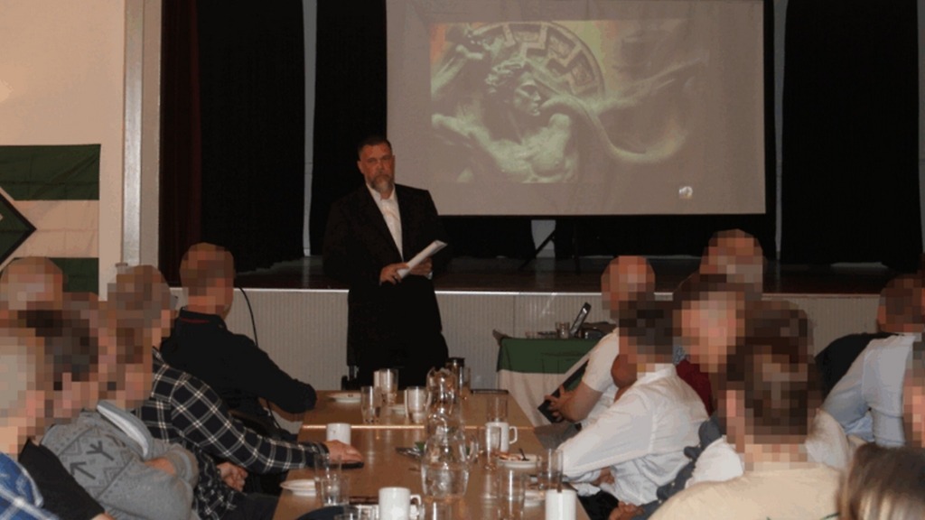Deretter talte lederen for Den nordiske motstandsbevegelsen, Fredrik Vejdeland. Han gav en historisk gjennomgang av idéen om en nordisk stat og viste hvordan denne tanken gjentatte ganger har gjort seg gjeldende i historien.