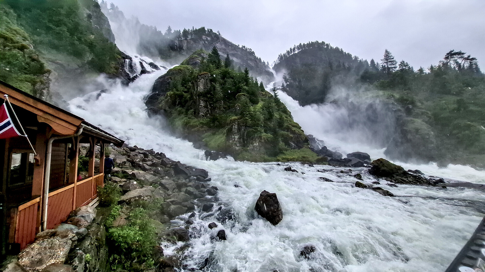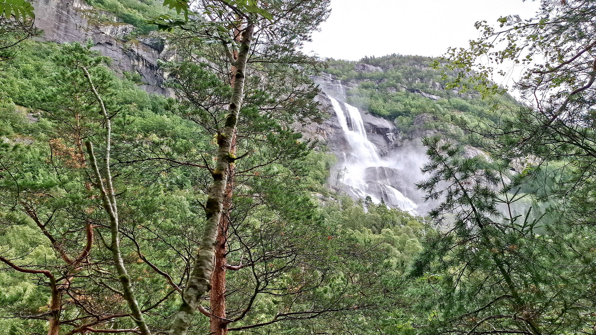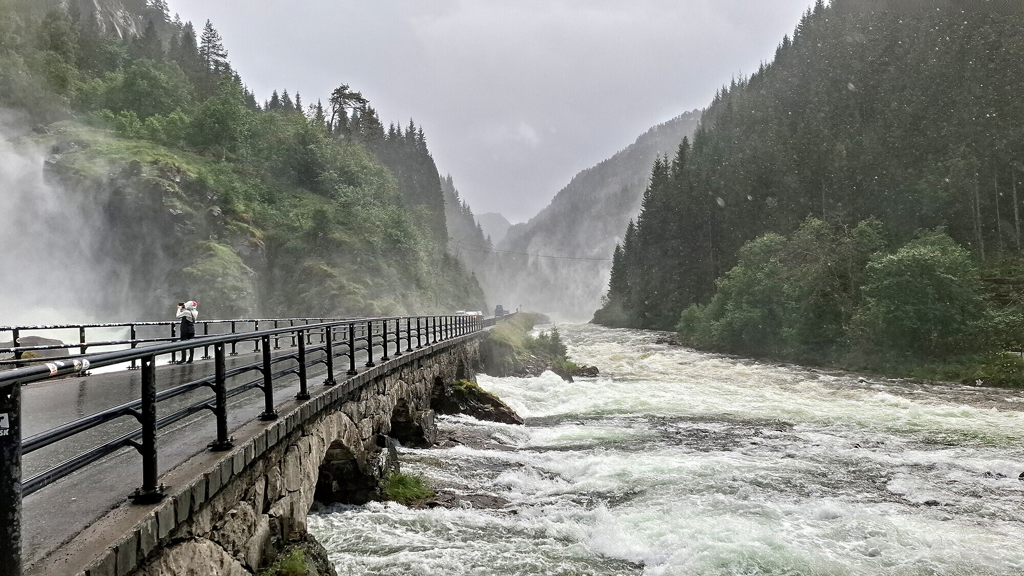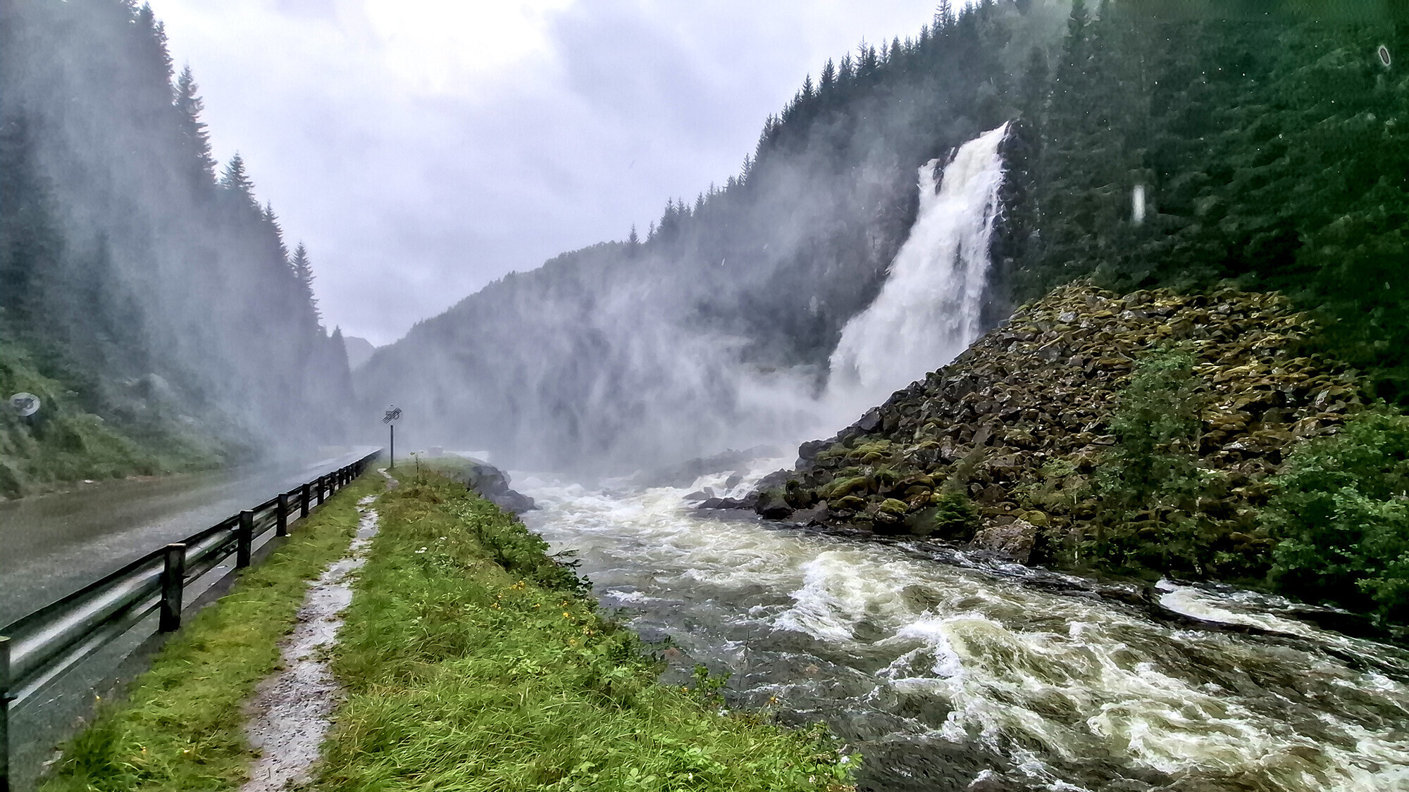 Etter hvert som de nærmet seg Odda, passerte de flere og flere fosser, og ved et par av dem stoppet de for å kjenne på naturens kraft. Tjørnadalsfossen ble sjekket ut en kort stund, i tillegg til den vakre utsikten fra strandkanten ved siden av bilveien, men det var først og fremst Låtefossen og nabofossen Espelandsfossen som virkelig var fantastiske. Begge fossefallene ender rett ved Riksvei 13 og slår ned med en slik kraft at veien er dekket av en konstant våt tåke, som om man kjører rett gjennom et regnvær.