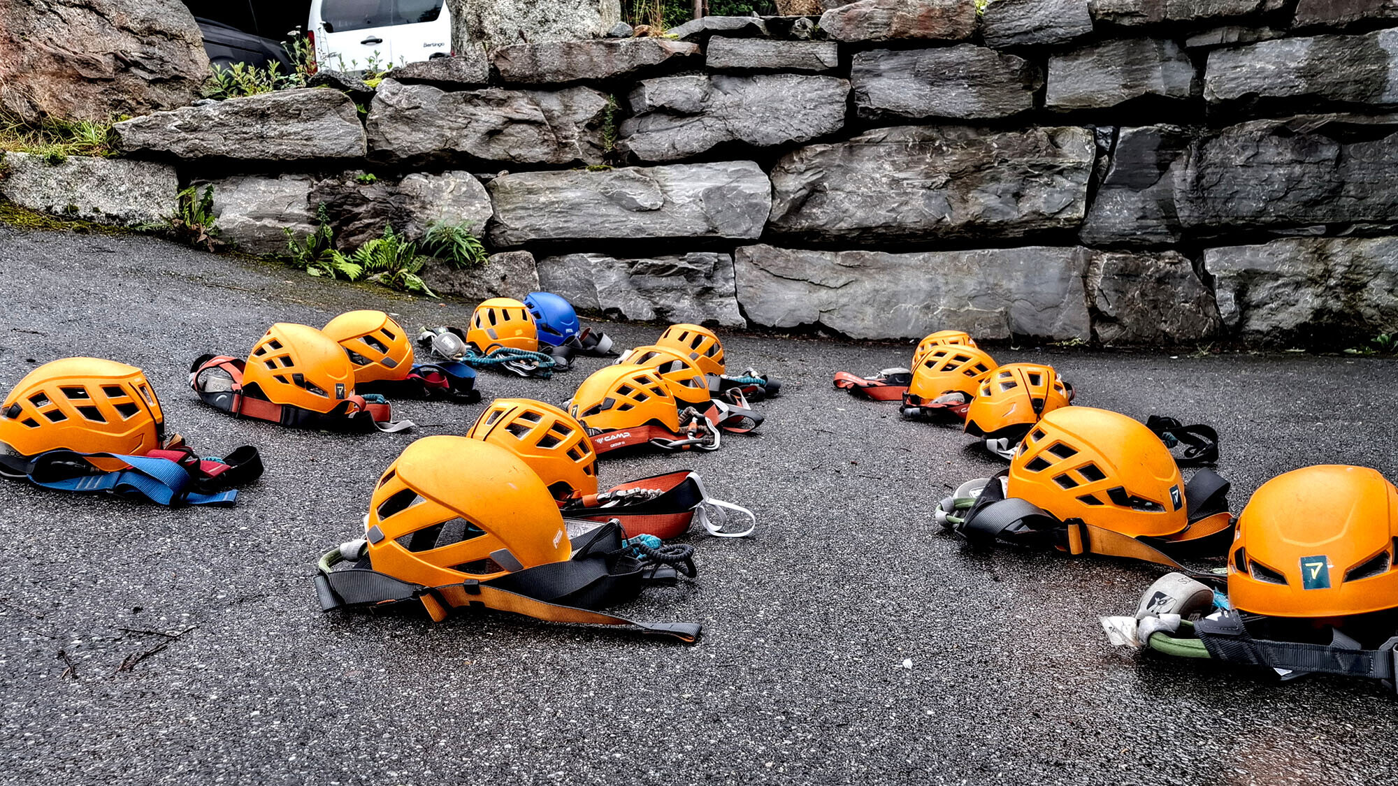 Ni og en halv time etter at vi hadde startet turen, var vi tilbake ved basecampen og leverte tilbake klatreutstyret og takket guiden for en vel utført jobb. Litt slitne i beina, men fortsatt ved godt mot, dro de tilbake til Odda for å spise og sove til neste dags eventyr.