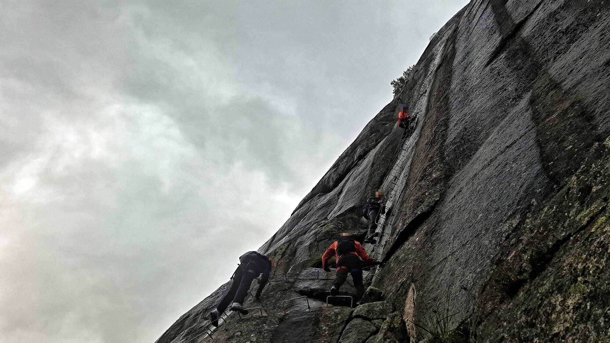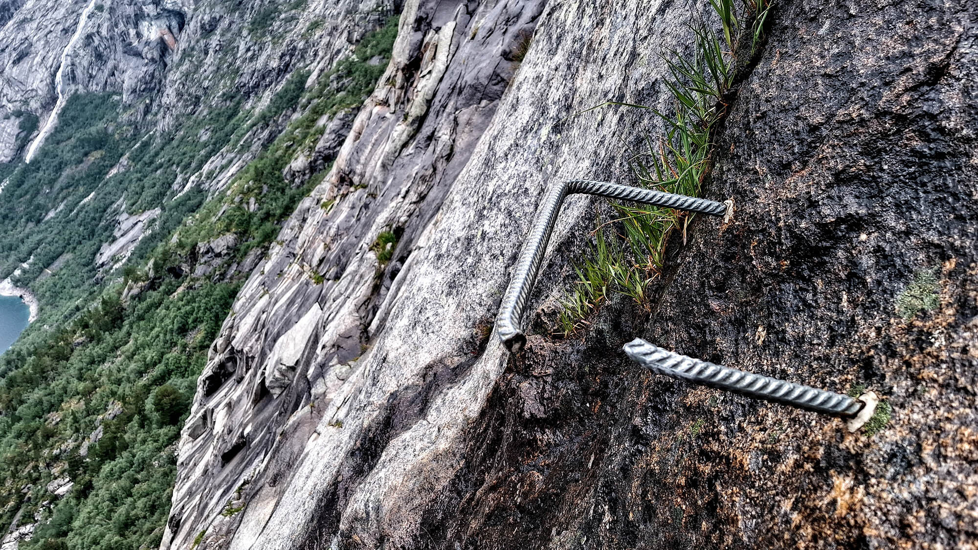 Tanken var å bruke selen til å klatre 250 meter rett opp en nesten loddrett vegg. Metallvaieren som var festet til fjellveggen, og de to karabinkrokene som var festet til selen, var livlinen de hadde i tilfelle de tok et feilsteg eller mistet grepet. I motsetning til andre steder der man kan klatre via ferrata, var denne veggen så bratt at det ikke var mulig å ta seg frem uten den typen utstyr som friklatrere bruker. Derfor var det kilt inn metalltrinn i fjellveggen, for det var meningen at også folk uten erfaring med fjellklatring skulle kunne klare det.