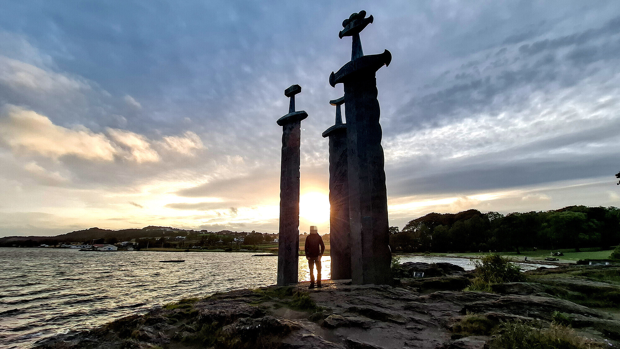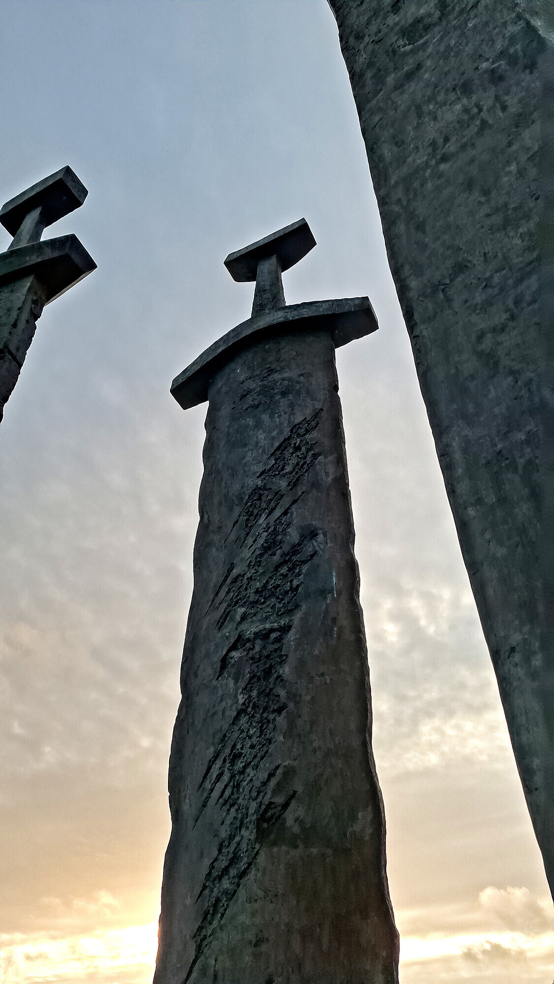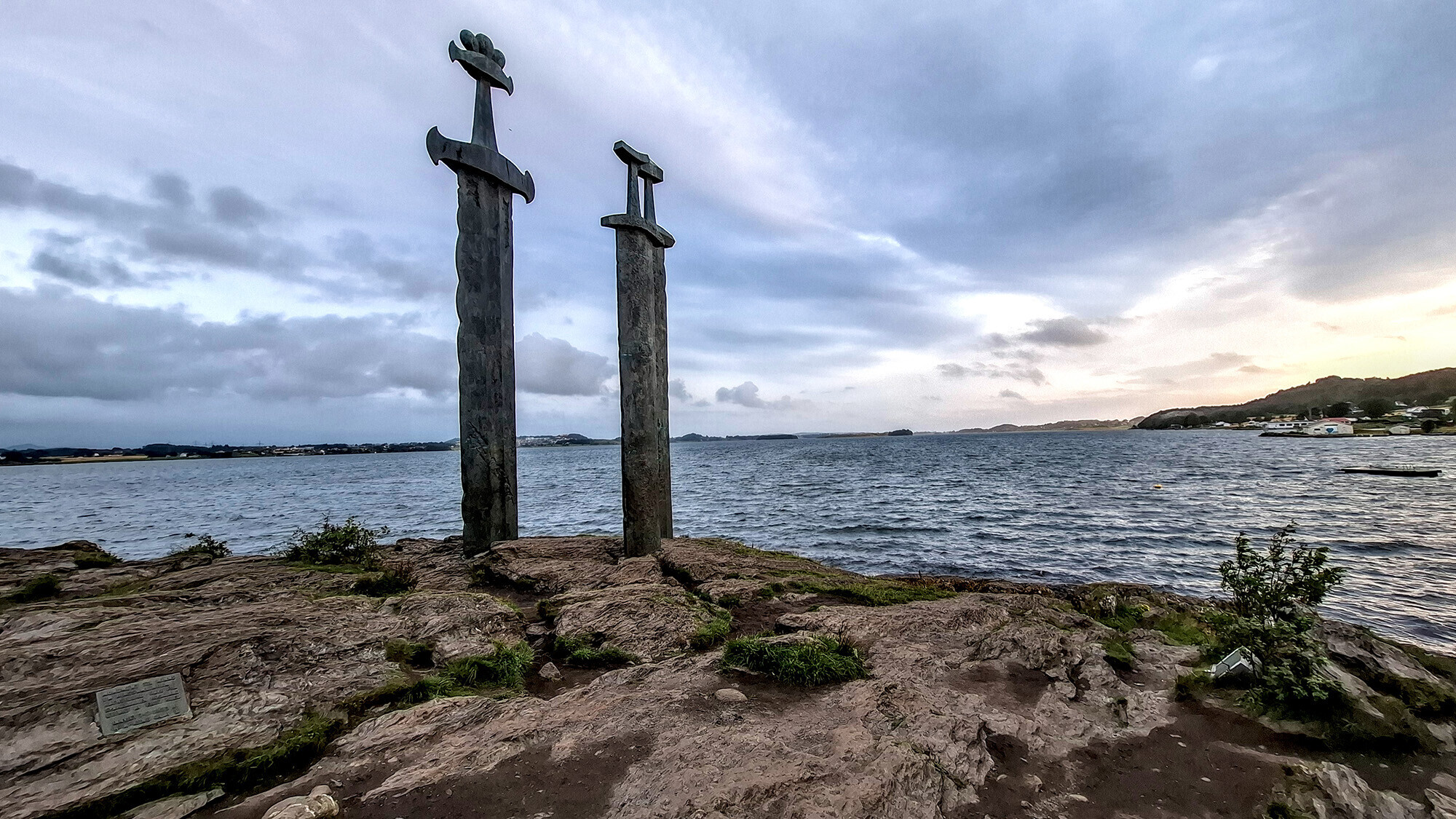 Ved siden av Hafrsfjorden ligger skulpturen Sverd i fjell, tre ni meter høye metallsverd som er stukket inn i fjellveggen, ment som et minnesmerke over slaget ved Hafrsfjorden i 872, da Harald Hårfagre skal ha samlet Norge til ett rike. Sverdene er svært imponerende, og det er vanskelig å ta inn over seg størrelsen på det hele når man står rett ved siden av det. I motsetning til tidligere attraksjoner var de her helt alene og kunne uforstyrret fotografere og se på sverdene og fjorden som de ville.