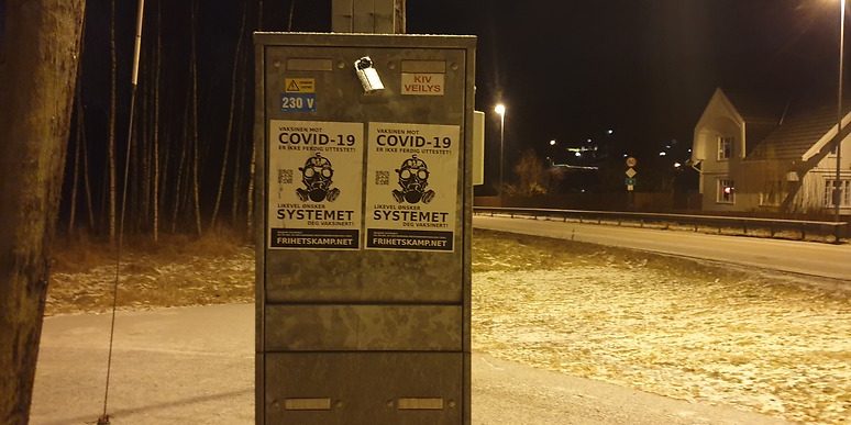Rede 2 har hengt opp opplysningsplakater om Covid-19 på Strai i Kristiansand.